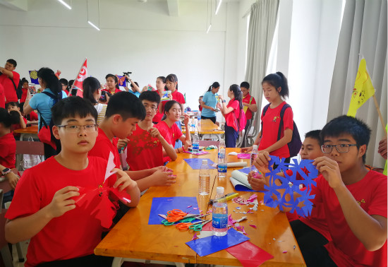 7月21日,非遗传承人李素芳为营员们讲授“瑶绣”和“剪纸”课程。营员们亲手体验了瑶绣的基本绣法和剪纸中“四折花”和“五折花”的剪法,一幅幅生动的作品充分展现了营员们的心灵手巧;营员们通过观看电影《厉害了,我的国》,感受中国日新月异的变化和突飞猛进的崛起;通过对市民族文化博物馆的参观,感受丰富多彩的民族文化和先辈们的聪明才智。