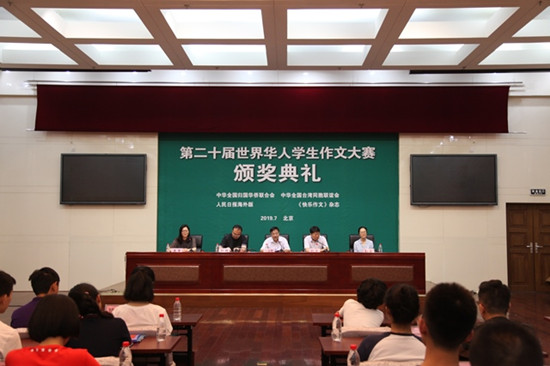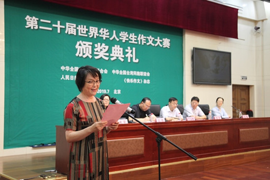 7月27日上午,由中国侨联、全国台联、人民日报海外版、《快乐作文》杂志联合主办的第二十届世界华人学生作文大赛颁奖典礼在北京隆重举行,中国侨联副主席齐全胜出席仪式并讲话。