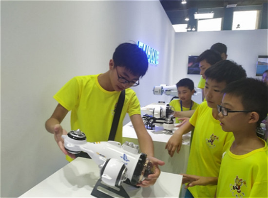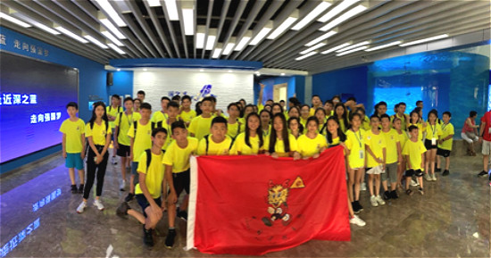 随后,营员们来到位于滨海新区的天津深之蓝海洋设备科技有限公司。该公司是国内首家从事全系列水下机器人自主研发、生产、销售一体化的民营企业。在工作人员的介绍下,营员们了解了深之蓝公司的企业文化和科技产品。该公司拥有水下机器人的核心技术,自主研发并销售与机器人动力、控制等系统等相关的软件以及水下推进器、水下摄像机等硬件设备。营员们在工作人员的带领下,参观并体验了一系列水下设备,包括辅助游泳器械、深潜护目镜等,此外还参观了水下机器人机型模拟救援的模拟影像,体验现代科技对于大众生活的提升和帮助。