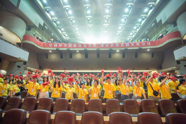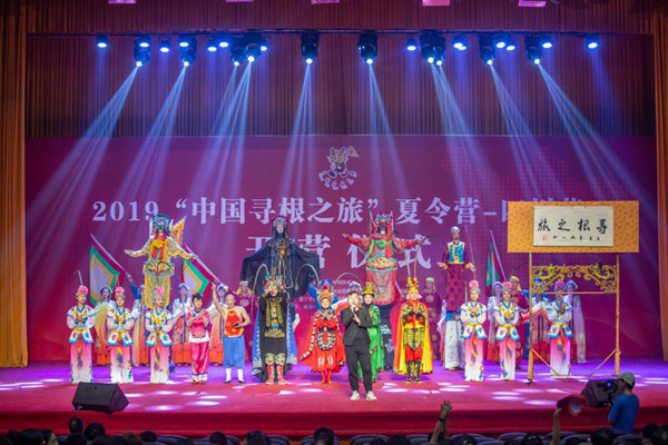 省侨联亲情中华艺术团为全体营员作了8分钟精彩演出,茶艺、变脸、大木偶等具有浓郁巴蜀特色的节目让营员们感受到四川厚重的历史人文。开营式结束后,全场同唱《龙的传人》。