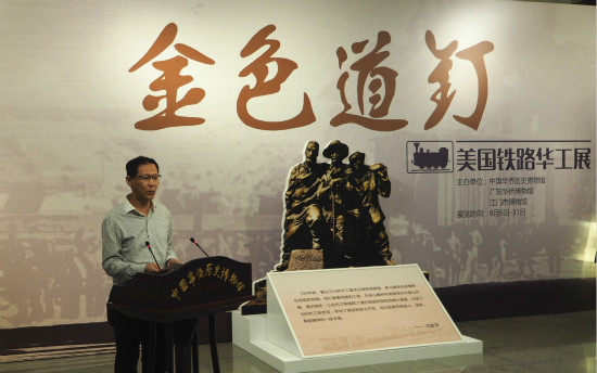 8月6日上午,在横贯美国大陆铁路建成150周年之际,“金色道钉——美国铁路华工展”在中国华侨历史博物馆开幕,共展出历史图片130余幅、实物展品80余件。展览由中国华侨历史博物馆、广东华侨博物馆、江门市博物馆共同主办。中国侨联副主席齐全胜出席开幕式,并为长期跟踪研究美国华工历史影像的摄影师李炬颁发了捐赠证书。