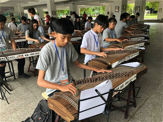 天空的夏云朵朵漫卷,午后的绿蝉声声高歌,校园的阳光闪闪发亮。听,是谁在用古筝弹唱;看,这一张张认真的脸庞……