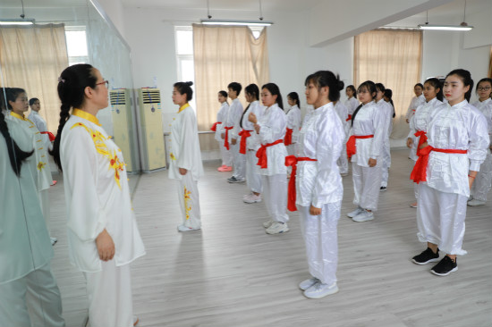 下午回到学校开始学习国家非物质文化遗产——太极拳,太极拳是以中国传统儒、道哲学中的太极、阴阳辩证理念为核心思想,集颐养性情、强身健体、技击对抗等多种功能为一体的强身健体的体操运动。在老师的解说和亲自表演示范中,神采奕奕的营员们对太极拳的拳法流露出浓厚的兴趣,他们专心听讲,认真练习。他们说,太极拳的学习让他们了解到中国儒、道哲学中太极的健身妙用。