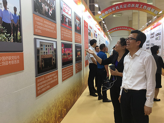 8月16日,由中央和国家机关工委主办的“不忘初心、牢记使命——中央和国家机关定点扶贫工作成果展”在北京全国农业展览馆开幕,李卓彬副主席出席展览开幕式并观展。中国侨联100余名党员、干部参观展览。