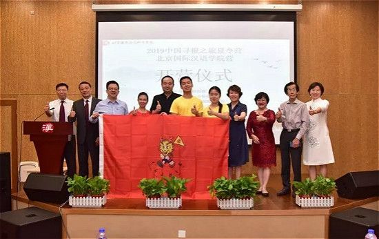 8月18日上午,2019年“寻根之旅”夏令营—北京朝阳营第二期开营式在北京国际汉语研修院举行,来自美国、加拿大、印尼、日本、奥地利等国的120名海外华裔师生参加了开营式。中国侨联文化交流部部长刘奇出席开营式并为营员授旗,北京市侨联副主席苏泳宣布开营。