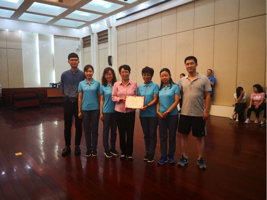 在举国上下喜迎新中国成立70周年之际,中国侨联直属机关工会于8月26日在机关举办了首届8字跳绳比赛。经过层层选拔,共有来自机关及企事业单位8支代表队参加决赛。办公厅工会、中国华侨历史博物馆工会、中国华侨工艺公益基金会工会分获前三名。中国侨联党组成员、副主席、直属机关党委书记隋军、中国侨联副主席齐全胜、中国侨联组织人事部部长、机关党委副书记姚林楠分别为前三名队伍颁发奖状。