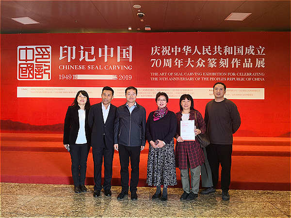 10月9日上午,中国侨联副主席齐全胜参观了在北京中华世纪坛艺术馆举办的“印记中国——庆祝中华人民共和国成立70周年大众篆刻作品展”,与展览主办方负责人中国艺术研究院中国篆刻艺术院院长、博士生导师骆芃芃、中华世纪坛党委书记、董事长张滨等进行了交流。