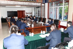 中国华侨历史博物馆党支部书记、副馆长祁德贵主持学习座谈会。