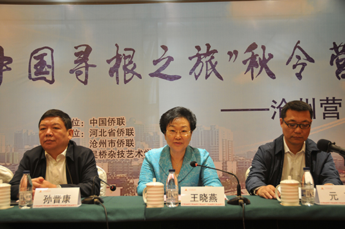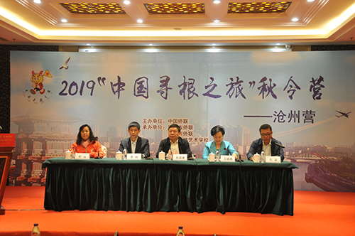 10月15日,由中国侨联主办,河北省侨联、沧州市侨联、吴桥杂技艺术学校承办的2019“中国寻根之旅”秋令营(沧州营)开营。河北省侨联副主席孙晋康、沧州市委常委、统战部长王晓燕、河北省侨联兼职副主席、沧州市侨联主席元革出席开营仪式,来自泰国的38名华裔青少年、老师与吴桥杂技艺术学校教师员工、省市侨联同志、志愿者等参加活动,河北省侨联兼职副主席、沧州市侨联主席元革主持开营仪式,河北省侨联副主席孙晋康为秋令营授旗。