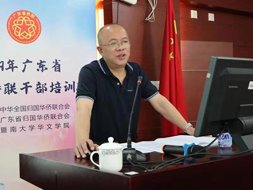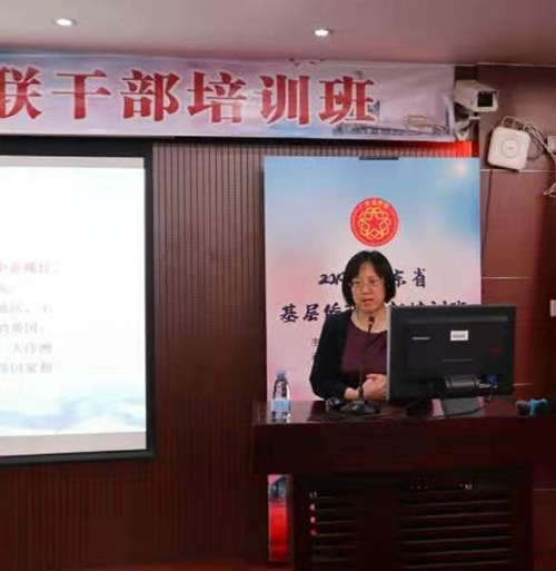 开班式后,黎静主席为基层侨联干部授课,以“开创新时代广东侨联工作新局面”为题 ,从广东省情、广东侨情的特点与变化、新时代侨联工作新定位、新时代侨联工作的主要任务、新时代侨联干部的“四种本领”六个方面,声情并茂,深入浅出地介绍了广东侨情变化的新特点,分享了如何成为一名优秀的基层侨联干部的思考。