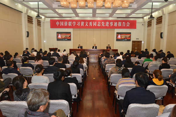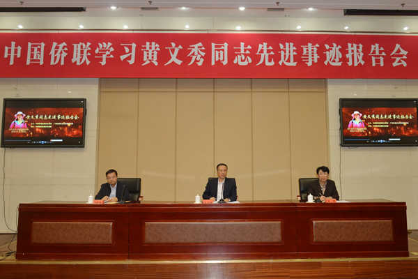 10月24日,由中国侨联直属机关党委、广西壮族自治区党委宣传部共同主办的黄文秀同志先进事迹报告会在中国侨联机关举行,黄文秀生前同事、亲人、同学和媒体代表等5名先进事迹报告团成员从不同角度讲述黄文秀生前的感人事迹,回顾了她短暂而光辉的一生。中国侨联党组书记、主席万立骏出席并讲话,中国侨联党组成员、副主席、直属机关党委书记隋军主持报告会。中国侨联副主席齐全胜,机关各部门、直属企事业单位全体干部,离退休干部党支部支委近200人听取了报告。这是黄文秀同志先进事迹报告团首次走进中央国家机关进行宣讲。