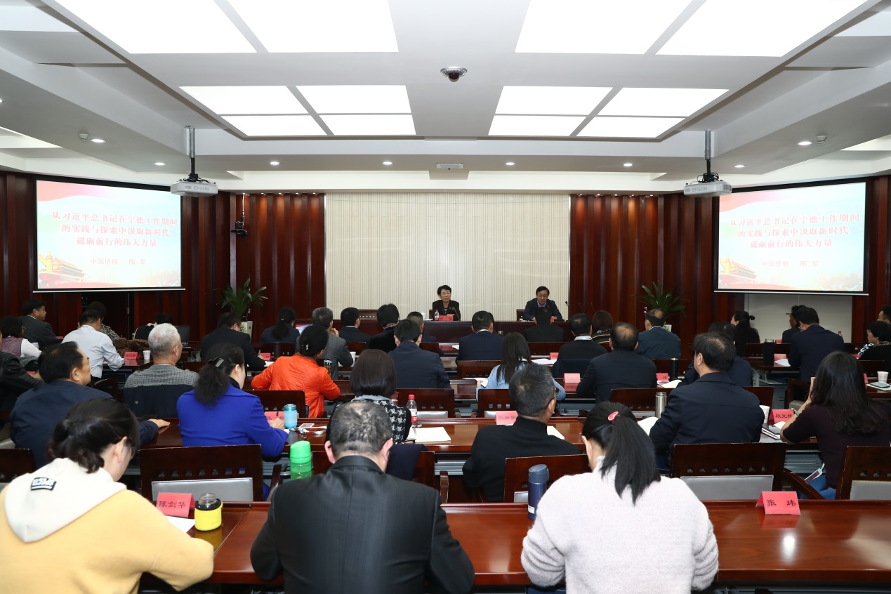 隋军回顾了习近平总书记与宁德的特殊情缘,并从经济、政治、文化、社会、生态文明建设等方面梳理了习近平总书记在宁德工作期间的实践与探索,介绍了习近平新时代中国特色社会主义思想在宁德的萌发历程。她指出,习近平总书记在宁德的工作实践与探索,是对共产党员“不忘初心、牢记使命”的生动诠释,是取之不竭、跨越时空的精神宝库,其思想精髓贯穿着以人民为中心的执政理念,贯穿着“功成不必在我”的政绩观,贯穿着滴水穿石、摆脱贫困的不懈追求,贯穿着从严管党治党的坚定决心,贯穿着马克思主义的世界观和方法论。