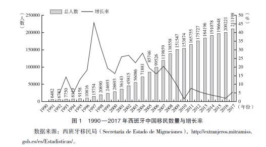 西班牙是中国新移民的主要移居国之一。从1978 年中国改革开放开始,大量中国移民涌入西班牙。据西班牙官方统计,截至2017 年底,该国在册华人总数为211,198 人,是西班牙第一大亚洲移民群体,占该国移民总数的4%。除了长期以来不断增长的族裔数量之外,这一群体的创业能力与经济活动也为西班牙社会所关注。尤其是在经济危机之后,中国移民数量依然逆势增加,经济活动保持活跃,这一现象引人探究。