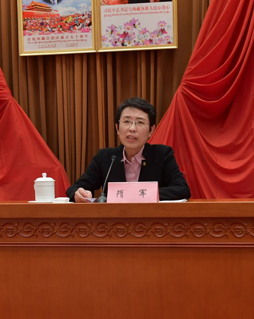 隋军指出,党的十八大以来,以习近平同志为核心的党中央高度重视侨联工作,对推进侨联改革、做好侨联工作作出一系列重要部署,有力推动了侨联事业发展。她希望西藏侨联组织和侨联干部以此次大会为契机,以习近平新时代中国特色社会主义思想和党的十九大精神为根本遵循,认真学习领会党的十九届四中全会精神,全面落实“十代会”各项工作部署,以高度的政治责任感、时不我待的紧迫感、建功新时代的使命感,团结引领西藏归侨侨眷和境外藏胞,不断开创西藏侨联工作新局面。一要旗帜鲜明讲政治,推动学习宣传党的十九届四中全会精神落地见效。坚持党的领导,增强“四个意识”,坚定“四个自信”,做到“两个维护”,引领广大侨界群众更加坚定中国特色社会主义道路自信、理论自信、制度自信和文化自信,不断增进西藏归侨侨眷和境外藏胞对“中国之治”的理解认同,画好侨界最大同心圆。二要治边稳藏反分裂,引导广大侨界群众树牢中华民族共同体意识。发挥侨联在凝聚侨心中的工作优势和作用,做好境外藏胞团结争取工作,引导广大侨胞特别是回国定居藏胞、藏胞友我力量,坚守民族大义、把握时代大势、毫不动摇地维护、支持祖国统一和民族团结,坚决与达赖集团等一切分裂势力作斗争,讲好中国故事、讲好中国制度的故事、讲好中国西藏故事,有力抵制国际社会涉藏杂音,为西藏经济社会发展营造良好环境。三要汇聚侨力促发展,为建设美丽和谐幸福新西藏贡献力量。紧紧围绕国家发展战略和西藏经济社会发展中心任务谋划推动侨联工作,加强境外藏胞联谊联络,大力宣传大美西藏,为西藏经济社会高质量发展增添崭新动能;主动排忧解难,维护合法权益,在教育、医疗、就业、扶贫等工作中多做好事实事,加大对困难归侨侨眷、藏胞的帮扶关爱力度,为西藏民生改善、社会稳定作出贡献。四要加强自身建设,不断增强侨联组织的凝聚力和战斗力。进一步夯实组织基础,扩大基层侨联组织覆盖面,向回国定居的侨胞藏胞集中的大学、园区、社区等领域延伸,逐步建立“两张网”;加强侨联侨务干部队伍建设,努力成为“贴心人”和“ 实干家”。