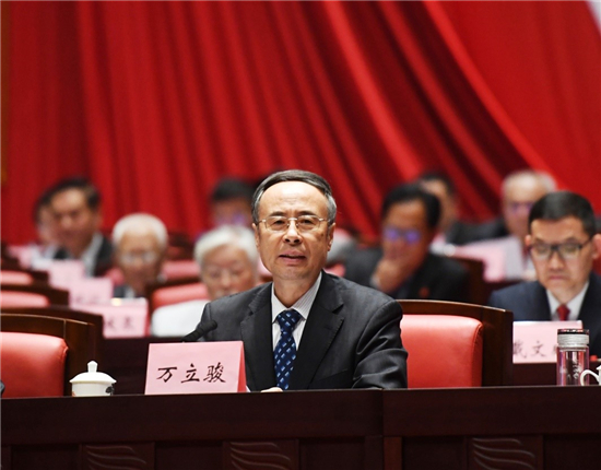 万立骏在讲话中指出,广东省第十次归侨侨眷代表大会以来,在省委、省政府的正确领导下,广东省各级侨联组织积极进取、开拓创新,发挥优势、担当作为,为推动广东经济社会发展作出了积极贡献,尤其是在坚持“两个并重”、深化“两个拓展”、推动“两个建设”、构建“两项机制”、推进“党建带侨建”、创建“侨胞之家”等方面进行了一系列富有成效的探索与实践。他希望广东省各级侨联组织以本次大会为契机,深入学习贯彻习近平新时代中国特色社会主义思想、习近平总书记关于侨务工作的重要论述和习近平总书记对广东工作的指示精神,牢记光荣使命,勇担时代重任,在新的起点上谱写广东侨联事业发展新篇章。