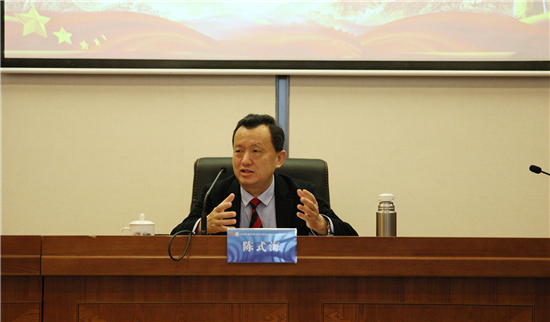 陈式海副主席欢迎各位研修班学员的到来,他介绍了福建省侨情和侨联工作情况,希望广大侨胞秉承爱国爱乡的优良传统,凝心聚力,广泛团结闽籍海外侨胞,为福建家乡多办好事和实事,为新时代新福建建设做出贡献。研修班期间,陈式海以“嘉庚精神历史内涵和时代意义”为题向研修班授课,号召广大学员做“嘉庚精神”的传承人,为两个一百年目标贡献更多的智慧和力量。