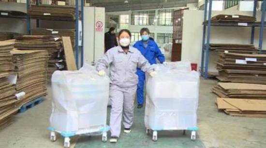与天加一起参与建设的还有省侨联侨青会会员企业、浦囗区的侨企南京天奥医疗仪器制造有限公司。1月25日一大早,三辆大货车停在了南京天奥的厂区里。这些即将运往武汉的物资是三天来车间工人们加班的成果。接到支援消息后,车间工人们放弃了春节假期,克服原材料紧缺等困难,加班加点生产包装手术室、急诊室急需的护理用品和医用病床等医疗设备,争分夺秒将数百件医用护理推车、医用家具搬运上车发往武汉蔡甸。