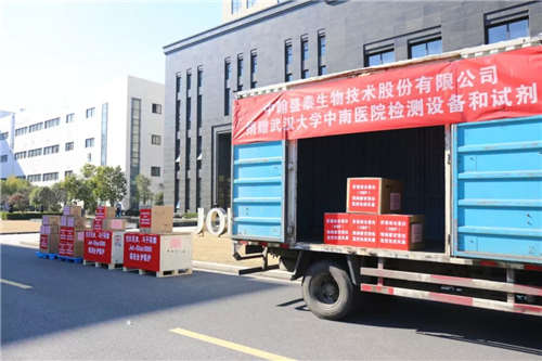 连小敏一行抵达中翰盛泰公司时,该公司率先响应省侨联开展的“致敬逆行、感恩天使”公益活动号召,向武汉中南医院捐赠的价值60多万元设备和检测试剂正在集装待发。连小敏对中翰盛泰开展的各项防控工作给予了充分点赞。他说,在这种特殊时期,中翰盛泰认真贯彻省委、省政府有关决策部署,通过省侨联将检测物资捐赠武汉前线医院,率先参与抗疫活动,投身天使公益,充分体现了侨企担当、侨界大爱。