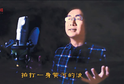 亚太通讯社社长刘继明在录制歌曲《华夏赤子》。(刘继明供图)
