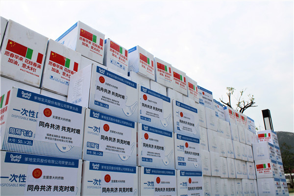 “愿春早来,花枝春满,加油,意大利!”“同舟共济,共克时艰。”……在刚刚从福建发抵意大利的援助物资上,印满了暖心的祝福语。这是福建省海外联谊会、福建省侨联携同旅意福建华侨华人同乡总会、旅意华企文化交流协会,共同为意大利普拉托医院捐赠的一批防疫物资。捐赠物资中包括2000多只医用口罩、990件防护服、38000个手套等。
