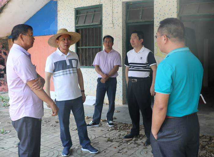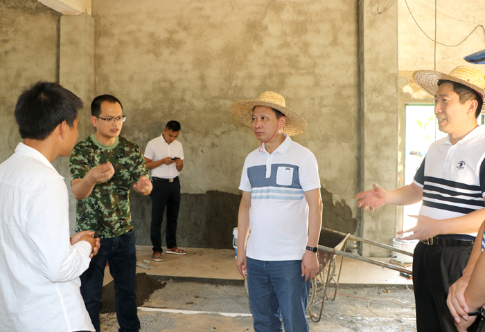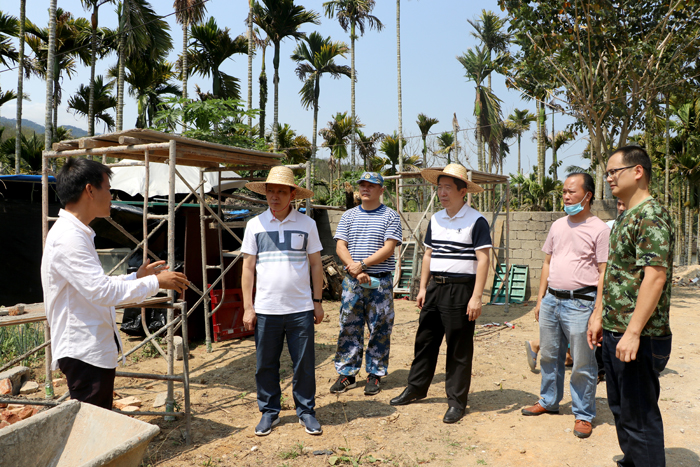 海南省侨联党组书记、主席黎才旺(右2)、党组成员李诚(右)察看长田村蜂蜜加工厂建设情况 陈苏琤 摄