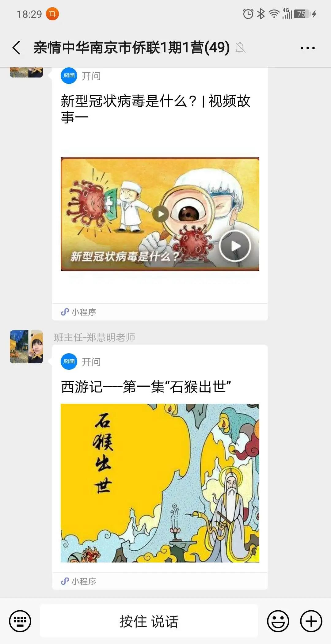 “亲情中华·为你讲故事”南京网上夏令营活动每期15天,于4月30日至8月底共举办8期,用微信软件为网络载体,以微信群为课堂形式,课程内容包括说文解字、姓氏起源、成语寓言、名著名人、历史溯源、防疫知识等,旨在帮助广大海外华裔青少年在疫情期间坚持学习并深入了解中华文化、培养对中华文化的兴趣,同时获取抗疫知识。