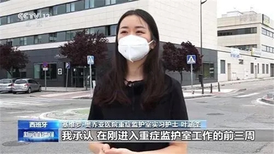 祖籍浙江温州的95后护士叶涵荃,是一名在读医学专业硕士。西班牙出现新冠肺炎疫情后,她就毅然申请加入了抗疫队伍,成为了塞维罗-奥乔亚医院重症监护室临时聘用的实习护士。