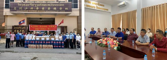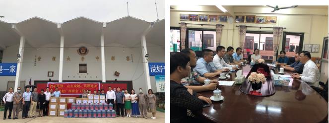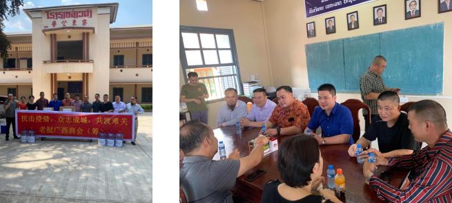 “新冠”无情,人间有爱,新冠肺炎疫情时刻牵动着每一个人的心。2020年5月4日至5月8日,受老挝中国总商会广西商会筹委会(以下简称广西商会(筹))组长陈钦儒先生委托,由副组长何诗先生、陈新军先生、陈钊林先生,筹委会主要成员廖培远女士、覃吉平先生、韦敏贵先生六人组成的慰问团,代表广西商会(筹)将一批批抗疫物资捐赠给老挝南部四所华校董事会和全校师生,看望慰问留守老挝的中国外派教师。感谢张富华先生全程参与与指导此次活动。