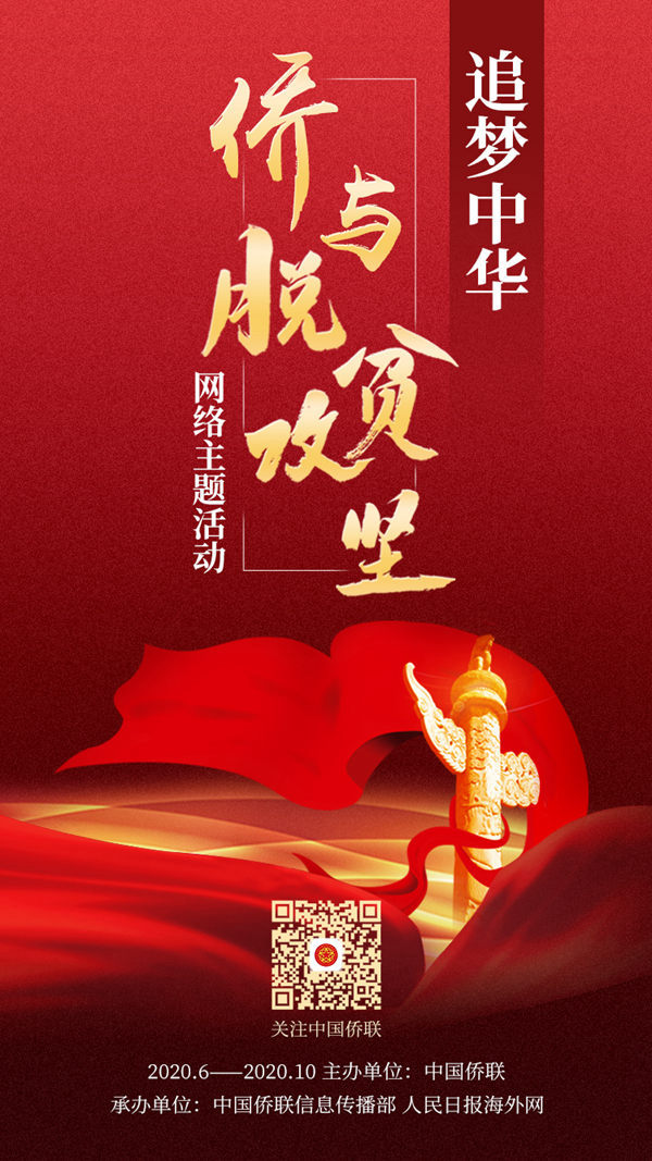 6月22日,由中国侨联主办,中国侨联信息传播部和人民日报海外网承办的“追梦中华·侨与脱贫攻坚”网络主题活动正式启动。本次活动将面向海内外侨界征集反映侨乡新貌和侨界参与脱贫攻坚的珍贵影像,旨在激励广大归侨侨眷和海外侨胞继续发扬爱国爱乡的光荣传统,携手共进奔小康,同圆共享中国梦,为决胜全面建成小康社会、决战脱贫攻坚添砖加瓦,一起书写新时代的新篇章。
