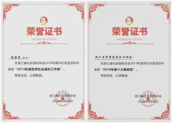 浙江省社会组织总会2019年度先进表彰大会于7月16日在杭州举行,浙江省侨商会荣获“十佳社会组织”称号,同时荣获“参与脱贫攻坚三年行动优秀组织奖”和“十大新闻奖”,浙江省侨商会监事长陈励君荣获“优秀社会组织工作者”称号。