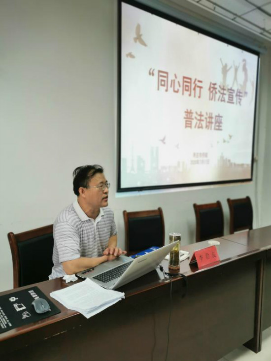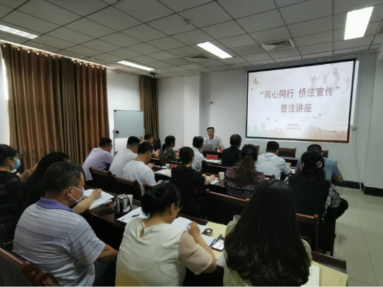 7月17日,枣庄市侨联举办“同心同行 侨法宣传”普法讲座。市侨联党组成员、副主席赵沂明主持。市侨联党组书记、主席王玉如,党组成员、副主席赵晖,全市侨联系统干部、市留联会会员、市侨商会会员、市侨星志愿者服务队队员、侨资企业代表等30余人参加。