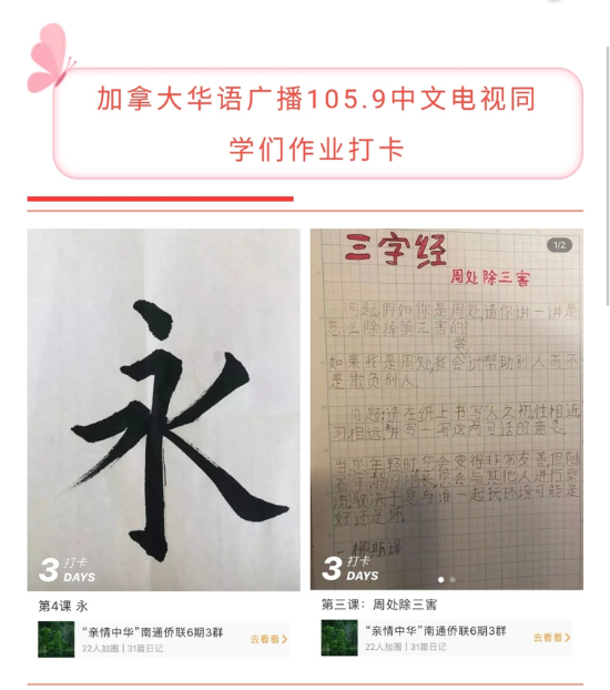 加拿大华语广播105.9中文电视朱紫澜完成作业打卡