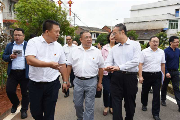 株洲市攸县新市镇丁家垅村是株洲市侨联定点帮扶的省级贫困村,经过各方面共同努力,于2016年脱贫。万立骏率中国侨联调研组来到这里,在株洲市委副书记、市长阳卫国等陪同下,察看海外华侨捐赠的村文化广场,走进蔬果种植大棚,登门看望农户,深入村综合服务中心,与干部、群众交流,不时询问有关情况。侨联的帮扶给村里带来了哪些变化、来文化广场活动的人多不多?一个大棚的年收入有多少、种植的白兰瓜甜度是多少?家里有几口人、老人身体和生活情况如何?这个中心都开展哪些便民服务、驻村干部是哪个单位派出的?村里人口有多少、主要发展什么产业、村干部有几名?村里在国外读书的有多少、都在哪个国家?