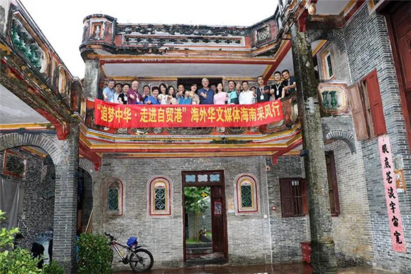 “追梦中华·走进自贸港”海外华文媒体海南采风团考察蔡家宅并合影(陈苏琤 摄)