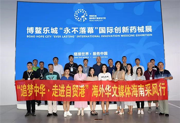 海外华文媒体海南采风团在博鳌乐城国际医疗旅游先行区合影(陈苏琤 摄)