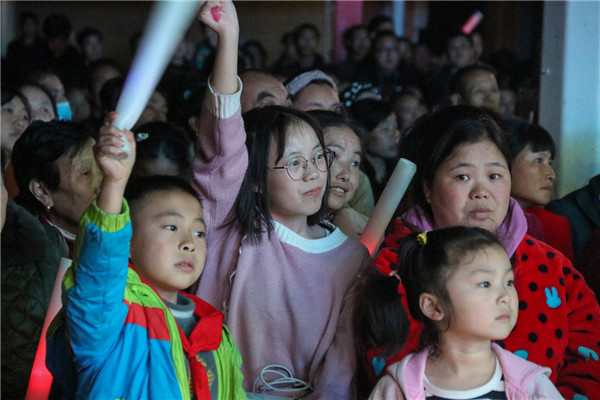 “演出太精彩咯,我们看得好过瘾!”平安乡向子村村民蒋兰香和父母、弟弟早早就赶来观看演出。“我们这里的许多老人,七八十岁了,但从来没有出过村子,也没看过这样的演出。今天真是看稀奇咯!”蒋兰香兴奋地说。作为返乡创业青年,她在两年前选择回家从事电商生意,将家乡的腊肉、土鸡、粉条、蘑菇等土特产通过互联网平台卖到外地。如今,她已成为乡里一家扶贫车间的负责人。“今年我们已经卖出了70多万元的订单,生意还不错!大家的日子越过越好,精神面貌也变了许多,以前都是邋邋遢遢的,你看现在穿得多整齐。这都离不开党的好政策呢!”