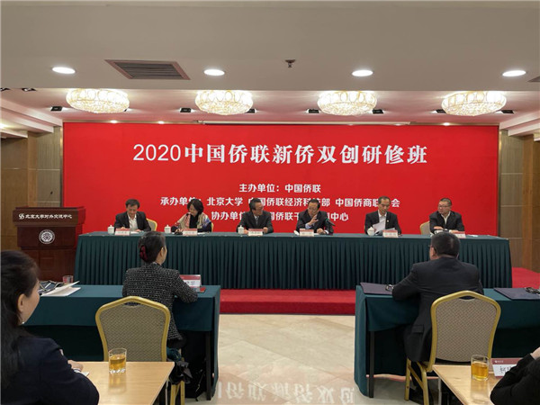11月11日下午,由中国侨联主办,北京大学、中国侨联经济科技部、中国侨商联合会联合承办的“2020中国侨联新侨双创研修班”在北京大学开班。中国侨联副主席李卓彬,北京大学党委副书记、校长郝平出席开班式并讲话,北京大学常务副校长、校侨联副主席龚旗煌致欢迎词。中国侨联副秘书长、经济科技部部长赵红英主持开班式。来自10多个国家和地区的45位侨界创新创业人士、海外侨社负责人、中国侨商联合会青年委员会代表参加本期研修班。