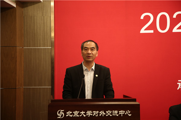 龚旗煌常务副校长代表北京大学向全体学员表示热烈欢迎,并介绍了北京大学助力疫情防控阻击战有关工作的开展情况。他表示,在国内疫情形势危急的时刻,海外华侨华人、华商华社第一时间快速行动,千方百计采购医疗物资,捐款捐物驰援祖国,家国情怀令人动容。他谈到,本期培训班借助北大学科优势和教学资源,结合当今国内外形势,精心设计了课程安排,希望学员们通过北大这扇窗口更加深刻地感知中国的现状与未来,中国面临的机遇与挑战,将中国的发展与自身事业的发展紧密结合起来,共同谱写新时代的发展新画卷。