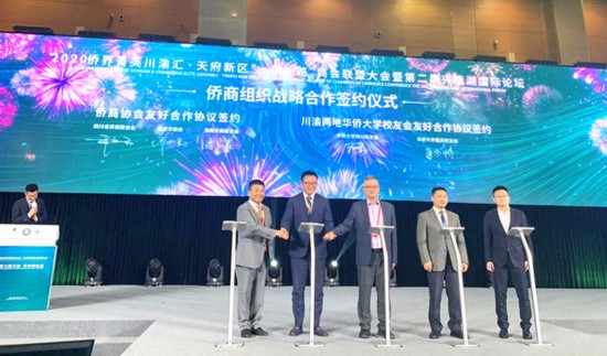 海南省侨联党组书记、主席黎才旺(左2)应邀出席“2020侨界菁英川渝汇·天府新区商会联盟大会”