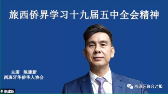 10月30日下午,由旅西侨界组织的《学习中国共产党十九届五中全会公报精神》视频会议圆满举行。中国驻西班牙大使馆领事参赞朱健,旅西侨界主要社团代表以及华文媒体代表等40余人参与了此次视频会议。