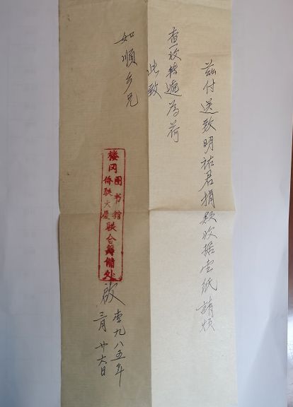 上世纪80年代华侨捐资家乡的捐款收据以及“海外家书”。这些一手资料对研究华侨历史具有一定的价值。