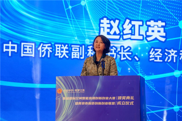 12月27日,由中国侨联指导,江苏省侨联、南京市侨联、南京信息工程大学主办,南京市栖霞区人民政府承办的创业中华·筑梦江苏——首届国际空间智能应用创新创业大赛颁奖典礼在南京成功举办。中国侨联副秘书长、经济科技部部长赵红英出席并致辞。江苏省侨联主席、党组书记周建农出席并讲话。南京市委常委王华,南京市侨联党组书记毛银玲,中国工程院院士、武汉大学副校长李建成,南京信息工程大学副校长戴跃伟,南京市栖霞区委副书记、区长王生,省侨联新侨创新创业联盟理事长谢东,省、市、区有关部门负责人,空间智能应用领域知名专家,驻宁高校侨联和校友会代表,省有关重点园区代表、新侨创新创业基地代表及新侨企业代表等近200人参加。
