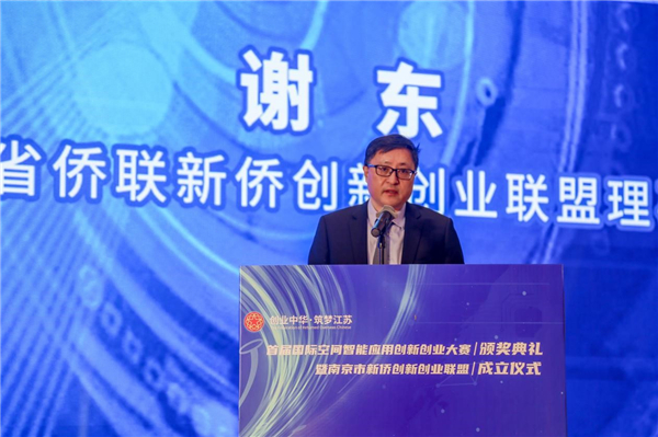 颁奖典礼结束后,同步举办了南京市新侨创新创业联盟成立仪式、空间智能应用领域专家报告会。谢东代表省侨联新侨创新创业联盟在南京市新侨创新创业联盟成立仪式上致辞。