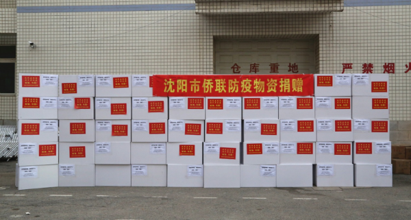 沈阳市侨联在市防疫指挥部物资仓储基地捐赠防疫物资
