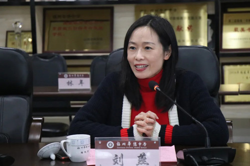 她强调说,在省市侨联的关心支持下,学校大力加强侨校特色文化建设,校董事会广大爱国华侨董事们情系教育,纷纷慷慨解囊助力福州华侨中学教育发展基金,支持学校建设与发展。今年抗击新冠肺炎疫情期间,常务副董事长颜俊文先生为福州华侨中学2019届高三优秀毕业生颁发“2020年赖庆辉高考奖学金”;副董事长蒋国情先生捐赠福州华侨中学教育发展基金10万元;副董事长石忠胜先生捐赠教育发展基金5万元以及价值近8万元教师节礼品;副董事长彭连东升先生向学校捐赠欧亚牛奶、酸奶;副董事长林年先生捐赠了口罩等防疫物资等等,江雄、蒋国情、王彬、彭连东升等侨领还鼎力支持学校省一级达标校终审评估工作。正是这些爱国华侨华人无私的大爱善举,让侨中充满着满满的爱,这种精神力量滋养了侨中每一位师生,同时她希望省市侨联领导以及各位侨领对学校的发展多提宝贵的建议,进一步推动学校加速提质的发展。