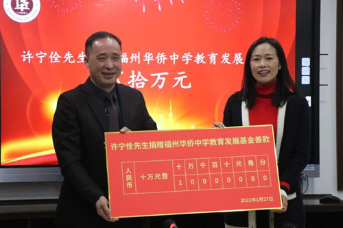 会上,许宁佺先生畅谈了自己资助教育事业的初心。他说,作为华侨华人能为桑梓教育出一份力,感到非常高兴。福州华侨中学能在疫情之中,开拓进取,为福州的教育发展做出了积极贡献。自己也愿意为侨校在百年树人的事业上尽一份力,同时也希望与学校签订一个长期的协议,每年定期资助40名优秀的贫困学生,为他们的健康成长尽一份民营企业的社会责任。