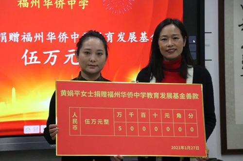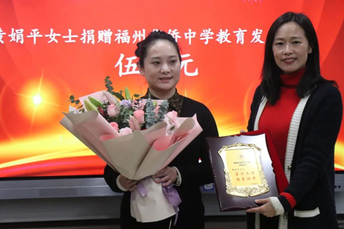 众高(福建)发展有限公司总经理黄娟平女士捐赠教育基金伍万元