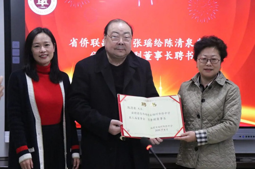 福建省侨联张瑶副主席向陈清泉先生颁发常务副董事长聘书