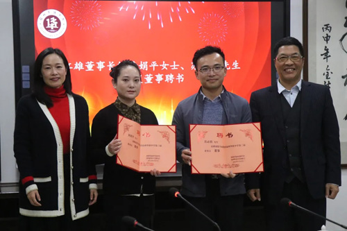 江雄董事长、刘燕校长向黄娟平女士、苏必群先生颁发董事聘书