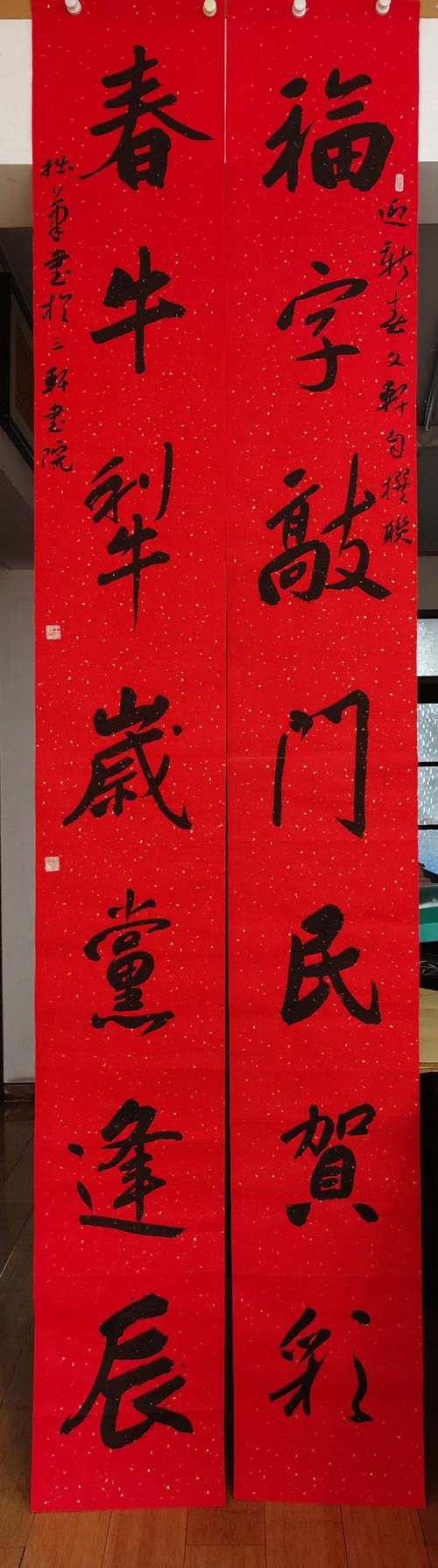 “喜迎春到侨家乐,福进门来盛世欢”“飞雪迎春吉侨寓,啼莺报序润嘉年”……手写春联在一提一落之间,更有家的味道、中国年的气氛。